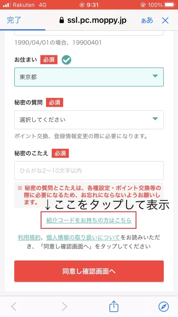 モッピー紹介コードを入力して会員登録する方法