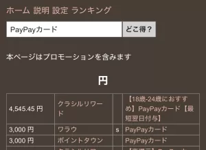 | PayPayカード案件タイプの比較表 | |