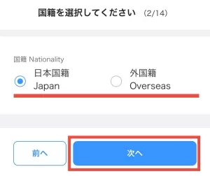 次に「日本国籍」か「外国籍」かを選択。