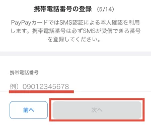 次に携帯電話番号を入力。