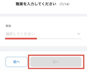 次に職業(学生含む)を選択。
