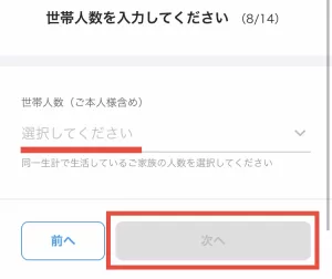 次に世帯人数を選択。