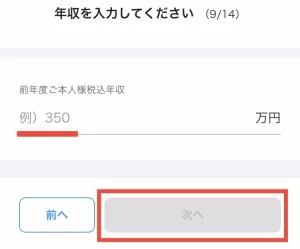 次に前年度の税込年収を入力。
