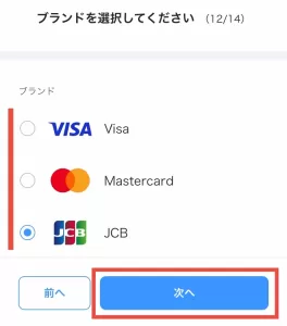 ここでは、PayPayカードの国際ブランド(マーク)を選択します。