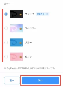 ここでは、PayPayカードのデザイン(見た目)を選択していきます。