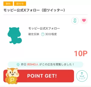 ちなみに、モッピーの公式Xは案件としてモッピー経由可能です。経由せず直接フォローしてしまうと損してしまうので注意しましょう。他にもハピタスやちょびリッチなどでも同様に案件がある場合があります。
