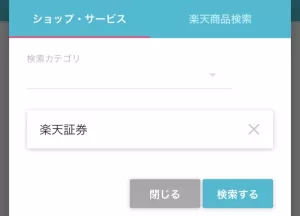 ハピタス内の「検索」から”楽天証券”と入力し、表示された「楽天証券」案件を選択します。