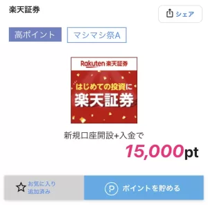 ポイントサイトで記録した「楽天証券」過去最高額