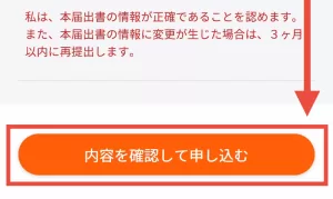 変更がなければ、ページの一番下にある「内容を確認して申し込む」をタップすると、手続き完了となります。